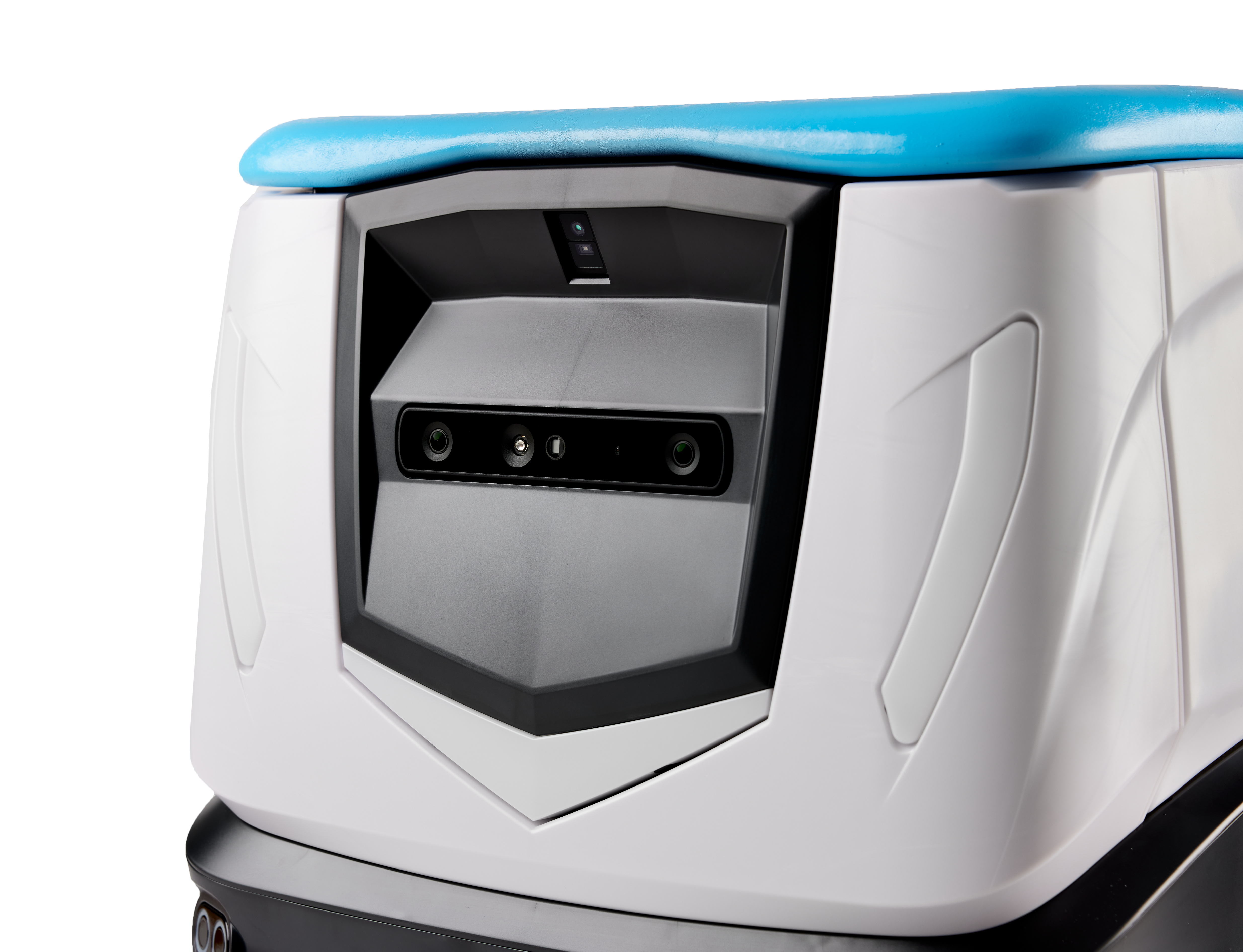 Industrial sweeper for factories and warehouses. 45 L trash bin. Fully autonomous 24/7.